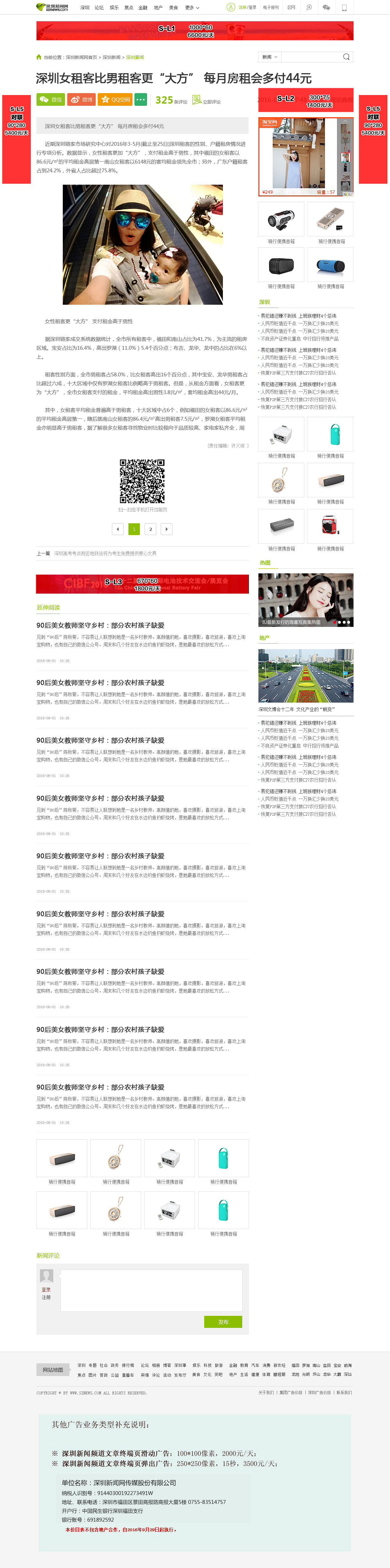 深圳新聞?lì)l道文章終端頁價(jià)目表 |
