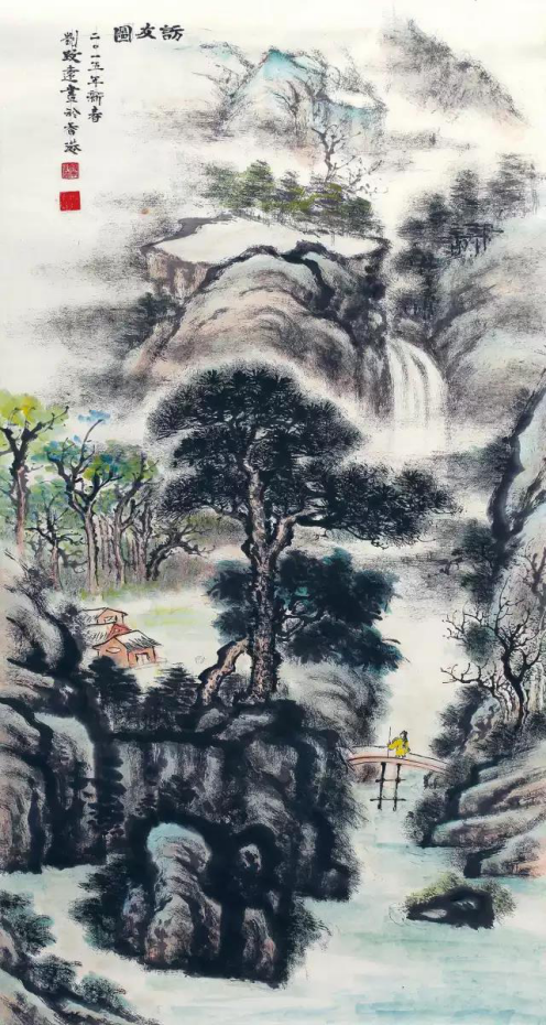 劉致遠《訪友圖》136cmx68cm 紙本設(shè)色