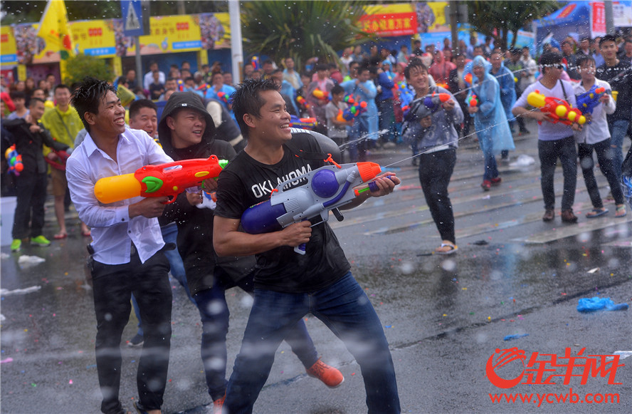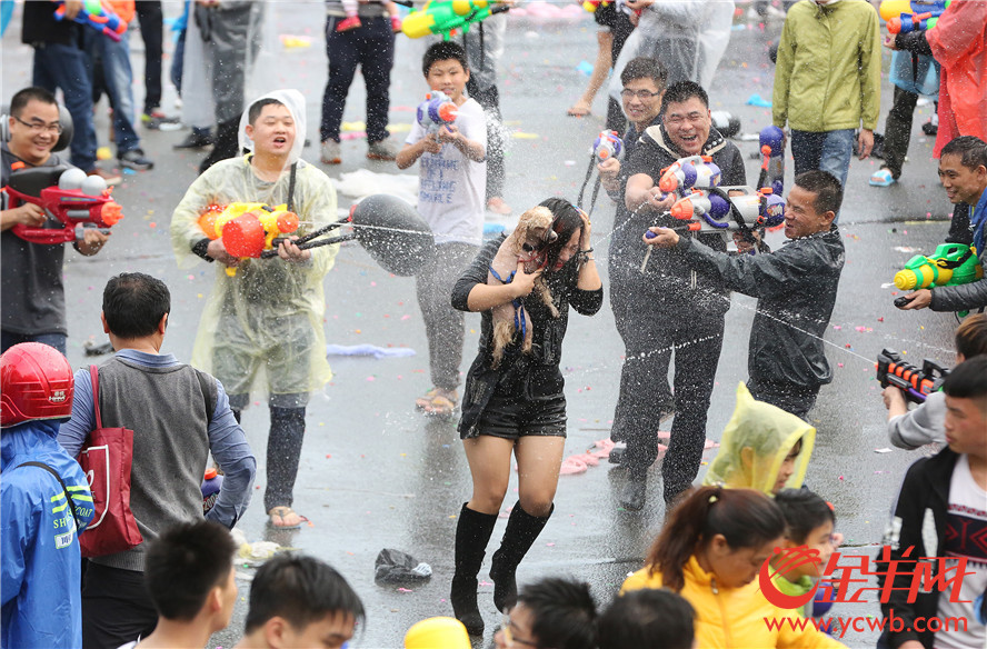 金羊網(wǎng)訊 記者湯銘明攝影報道:2017年2月27日,農(nóng)歷二月初二,“龍?zhí)ь^”的日子,東莞東坑鎮(zhèn)迎來了一個盛大而獨特的地方節(jié)日——二月初二“賣身節(jié)”。每年這個時候,東坑的居民都會舉行隆重的歡慶活動,當中“射水狂歡”就是重頭戲!街坊們走上街頭,盡情地互相潑水,祝福的水花飛濺,場面熱鬧壯觀。