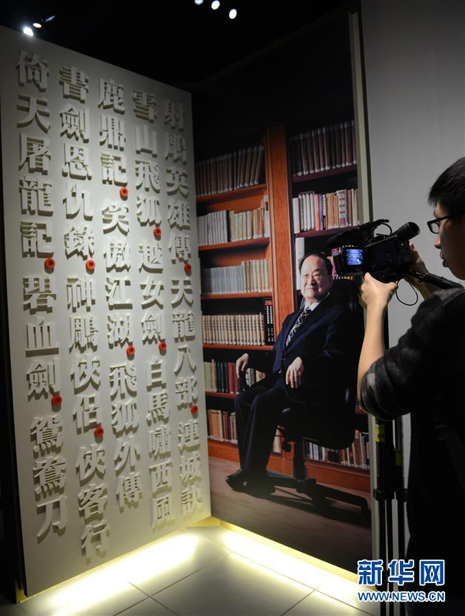 2月28日,媒體記者在“金庸館”的入口處拍攝。當(dāng)日,香港首個以著名武俠小說家金庸為主題的常設(shè)展館——“金庸館”在香港文化博物館揭幕,將于3月1日正式與市民見面。展館內(nèi)共展出珍貴手稿、照片、早期小說版本以及各類水墨畫等300多項(xiàng)展品,介紹金庸的早期事業(yè)、武俠小說創(chuàng)作歷程及其小說對香港流行文化的影響。秦晴攝
