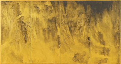 “知新”是近年系列的水墨探索,梳理丘挺的“思古求新”。其中“曠度”展廳中間還原了2010年丘挺在波士頓“與古為徒”展中《西山嵐色》與趙令穰《湖莊清夏》的呼應;以及丘挺近些年的水墨探索,尤其屏風與音樂相關的創(chuàng)作,以視覺聽覺結(jié)合的方式呈現(xiàn)。屏風《幽谷圖系列》創(chuàng)作是對山水具體的畫材形式的解構(gòu),既不抽象也不具象,試圖以水墨回到“恍兮,惚兮”的意象性。