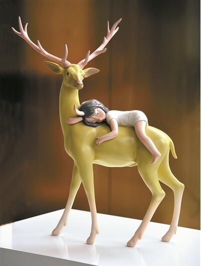 賈曉鷗的作品《悅悅》放在展廳中央格外引人注目:一位純潔的天使少女,輕輕踮起腳尖,昂首閉目,擁抱自己,臉上洋溢著幸福的甜美和自信的笑容,給人們帶來無限的想象力。賈曉鷗在現(xiàn)場分享了悅悅的設計理念:以天使少女為形象的悅悅代表著喜悅,包含著童話的美感,又攜帶著對未來的憧憬與希冀。白色調代表著小女孩獨有的純真、善良與純粹,讓人在無論何時觀賞都能感受到安靜與優(yōu)雅。干凈利落的短發(fā),在夢幻的氛圍中凸顯出少女的蓬勃朝氣與幸福甜美。