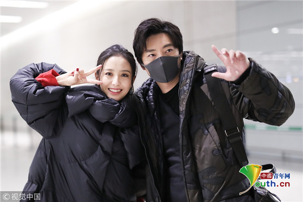佟麗婭郭京飛賣萌合影 個(gè)性羽絨服俏皮減齡