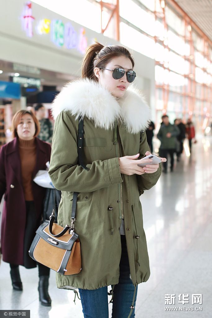 2017年12月14日,何穗現(xiàn)身機場,手插口袋御寒戴白色羽絨帽喜感足。