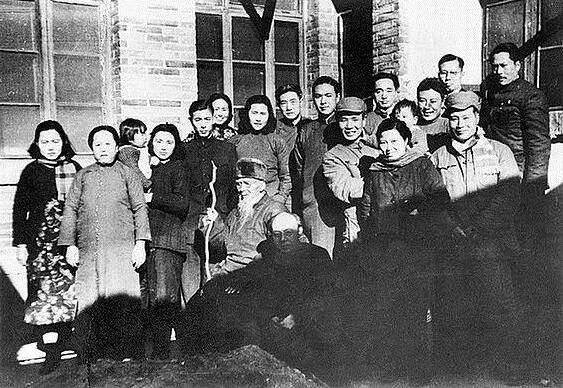 1950年,文化界名流李苦禪、李可染、滑田友等人在大雅寶胡同甲2號慶祝白石老人90歲壽誕時合影。