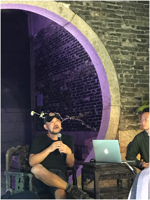 本次講座活動是由藝術(shù)家、策展人楊勇主持,兩位特邀嘉賓分別是中山大學(xué)傳播與設(shè)計(jì)學(xué)院的教授馮原(同時擔(dān)任2011年深圳香港/城市雙城雙年展學(xué)術(shù)委員會)以及現(xiàn)任Collect總監(jiān)伍常(曾為佳士得拍賣行美術(shù)學(xué)院亞洲課程主管)。在粵港澳大灣區(qū)的城市群背景下,主持人從大鵬所城的歷史及賴氏家族影響遺留下的民俗,講座嘉賓則分別從各自所處的城市—香港、廣州為著眼點(diǎn)展開學(xué)術(shù)討論。