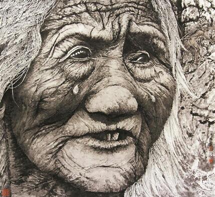 ▲手指畫《纖夫系列之——母親》