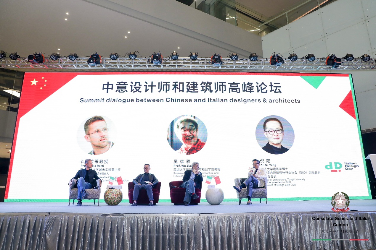 活動(dòng)還邀請(qǐng)到深圳大學(xué)建筑與城市規(guī)劃學(xué)院教授吳家驊、深圳室內(nèi)建筑設(shè)計(jì)行業(yè)協(xié)會(huì)(SIID)會(huì)長(zhǎng)倪陽(yáng)博士與Carlo Ratti (卡洛·拉蒂)教授進(jìn)行論壇對(duì)話。吳家驊教授從中國(guó)人的基礎(chǔ)思維,民族性上看待城市未來這一概念。他認(rèn)為人口、土地、資本綜合實(shí)力是決定未來城市的核心。同時(shí)他希望,在未來,中意兩國(guó)能夠在城市設(shè)計(jì)上有更加深入的合作,達(dá)到“東學(xué)西建”的影響力,把中國(guó)設(shè)計(jì)師的創(chuàng)造性激發(fā)出來。倪陽(yáng)博士則表示,科技對(duì)于城市未來的影響力是極大的。大數(shù)據(jù)的發(fā)展,已經(jīng)能夠做到對(duì)未來城市的預(yù)測(cè),而設(shè)計(jì)這樣人文類的工具,與科技的結(jié)合,為未來城市帶來的前景是可觀的。