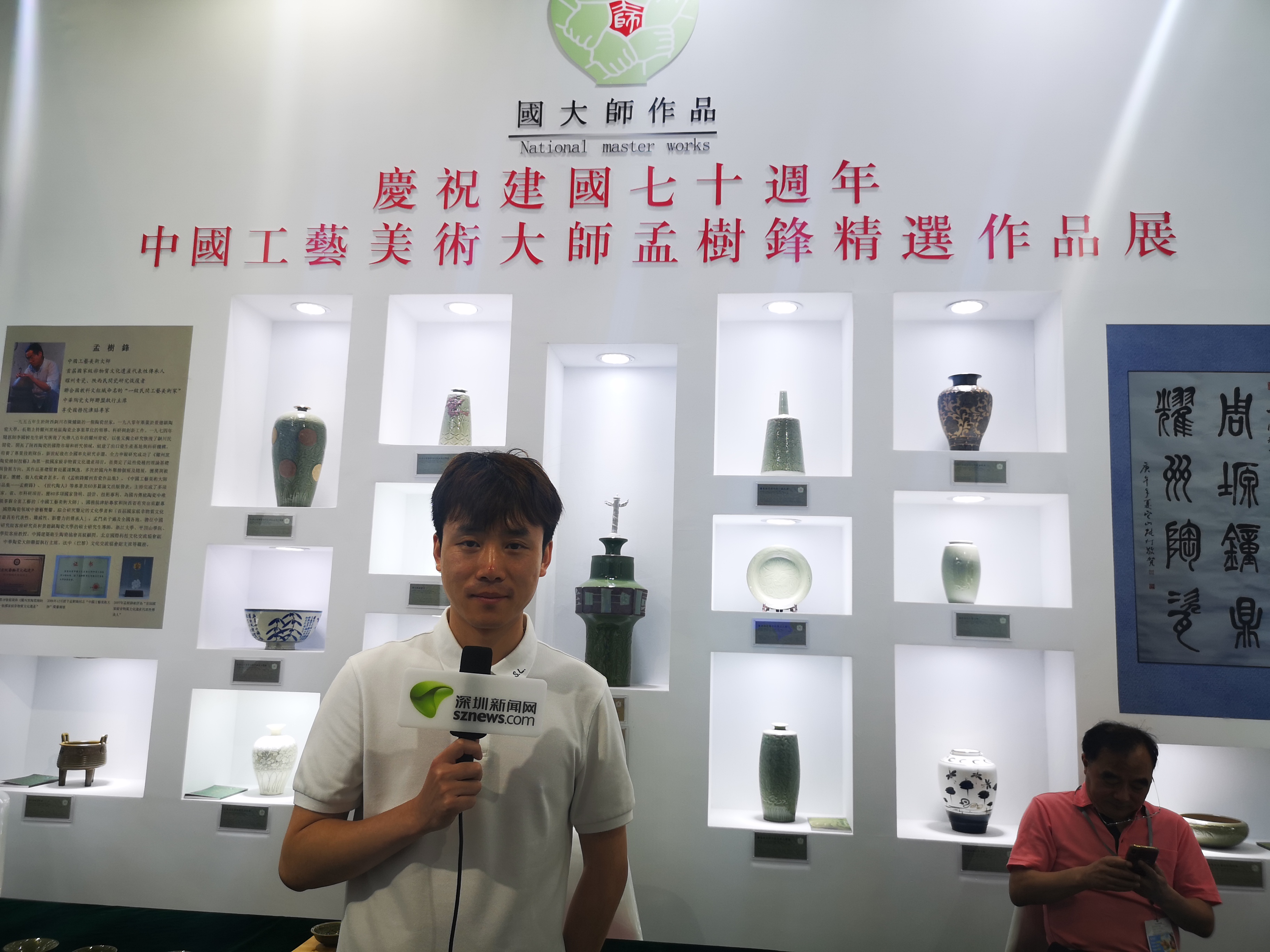 中國陶瓷設計藝術(shù)師孟鳴是此件青瓷作品的設計者,他在接受記者采訪時表示,今年適逢祖國建國七十周年,又是改革開放與深圳特區(qū)建立40周年,在這樣一個特殊的年份,在深圳文博會現(xiàn)場,展示這件非常有意義的作品——“中國吉祥”,以此來祝福祖國永遠繁榮昌盛。