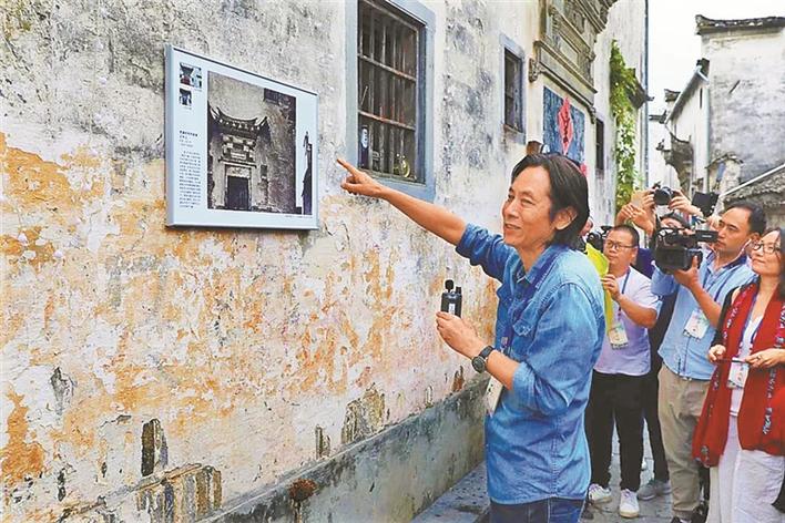 ▲2018年應(yīng)天齊帶領(lǐng)嘉賓在“應(yīng)天齊西遞村藝術(shù)館”觀摩畫展。