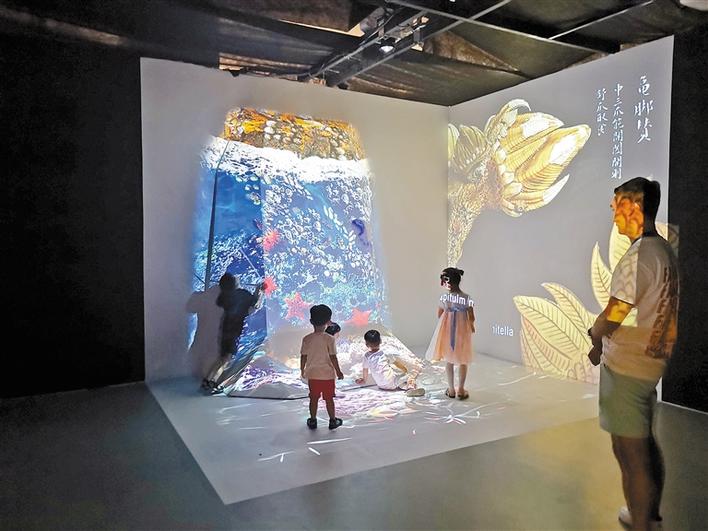 記者現(xiàn)場看到,觀眾的參觀路線以聶璜的考察路線為脈絡(luò),跟隨聶璜信步海濱,走訪漁市,探究舶客、旅人、漁民口中筆下的謎之生物。昨日提前參觀展覽的家長與小朋友都表示展覽十分有趣,這種科技與古代文化結(jié)合的展覽,能讓小朋友在游玩中“漲知識”。