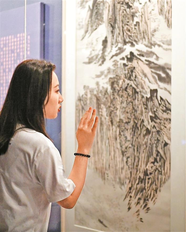 展覽一經(jīng)推出,就迅速吸引了絡(luò)繹不絕的市民前來(lái)參觀。面對(duì)暑期人流量大的情況,關(guān)館特地推出了豐富多樣的公共教育服務(wù)。不僅有志愿者導(dǎo)覽,還有親子工作坊、數(shù)字化設(shè)計(jì)等等,內(nèi)容接地氣,趣味橫生。記者看到不少孩子都在家長(zhǎng)的指引下拿著畫(huà)本在美術(shù)館里臨摹、學(xué)習(xí),通過(guò)這種方式與國(guó)畫(huà)家們一起交流切磋。