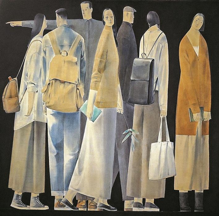 梁國輝的《新生》體現(xiàn)出一種新的圖像構(gòu)建的可能性,塑造出的人物形象具有生動的情感和鮮明的個(gè)性;涂蓉蓉的《鏗鏘之音》以抽象的表現(xiàn)方式讓我們感到“無形”和“有形”之間的微妙關(guān)系;王彪的《收工之八十六》展現(xiàn)其寫實(shí)功底,并致力于探索如何用更加多元的藝術(shù)語言來表達(dá)自己的感受。