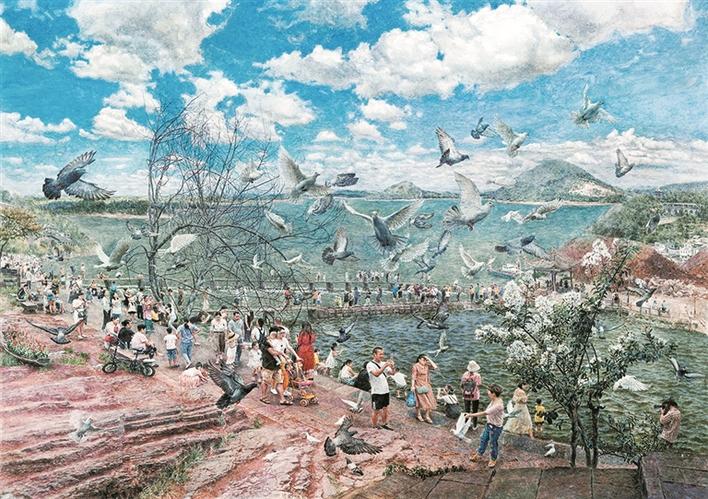 頡元芳的《遠(yuǎn)方》表現(xiàn)了內(nèi)蒙古西北草原民族的人文情感和真實(shí)的生活狀態(tài);向園的《夏風(fēng)》運(yùn)用浪漫主義和象征主義的創(chuàng)作手法,讓我們回到一種自然、安寧、和諧的畫境之中;奚忠恕的《天路》,讓我們直面感受到面對“最美奮斗者”,用畫筆為他們點(diǎn)贊;吳登軍的《遺失的世界系列——三十六》呈現(xiàn)了他對環(huán)境問題的思考。