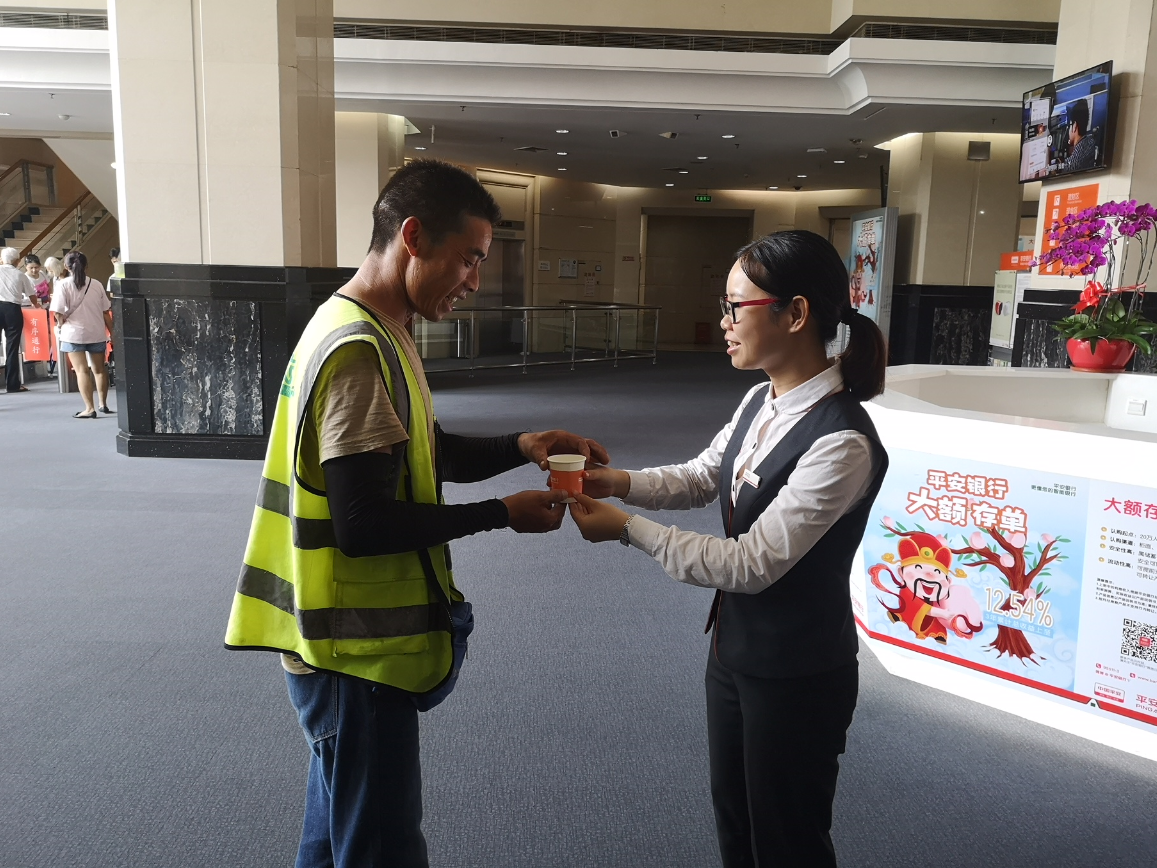 炎炎夏日,清潔工、建筑工人、快遞員等戶外工作者,頭頂著烈日、在滾滾熱浪中辛苦工作,守護(hù)著城市的安寧與美麗。為了關(guān)愛(ài)這些戶外工作者,傳遞社會(huì)正能量,踐行社會(huì)責(zé)任,平安銀行在全國(guó)網(wǎng)點(diǎn)發(fā)起了“夏日送清涼?平安更懂你”公益行動(dòng)。該行深圳分行也在深圳地區(qū)100多家網(wǎng)點(diǎn)全面開(kāi)展了此項(xiàng)公益活動(dòng),在炎熱的夏日為戶外工作者送去一份關(guān)愛(ài)。