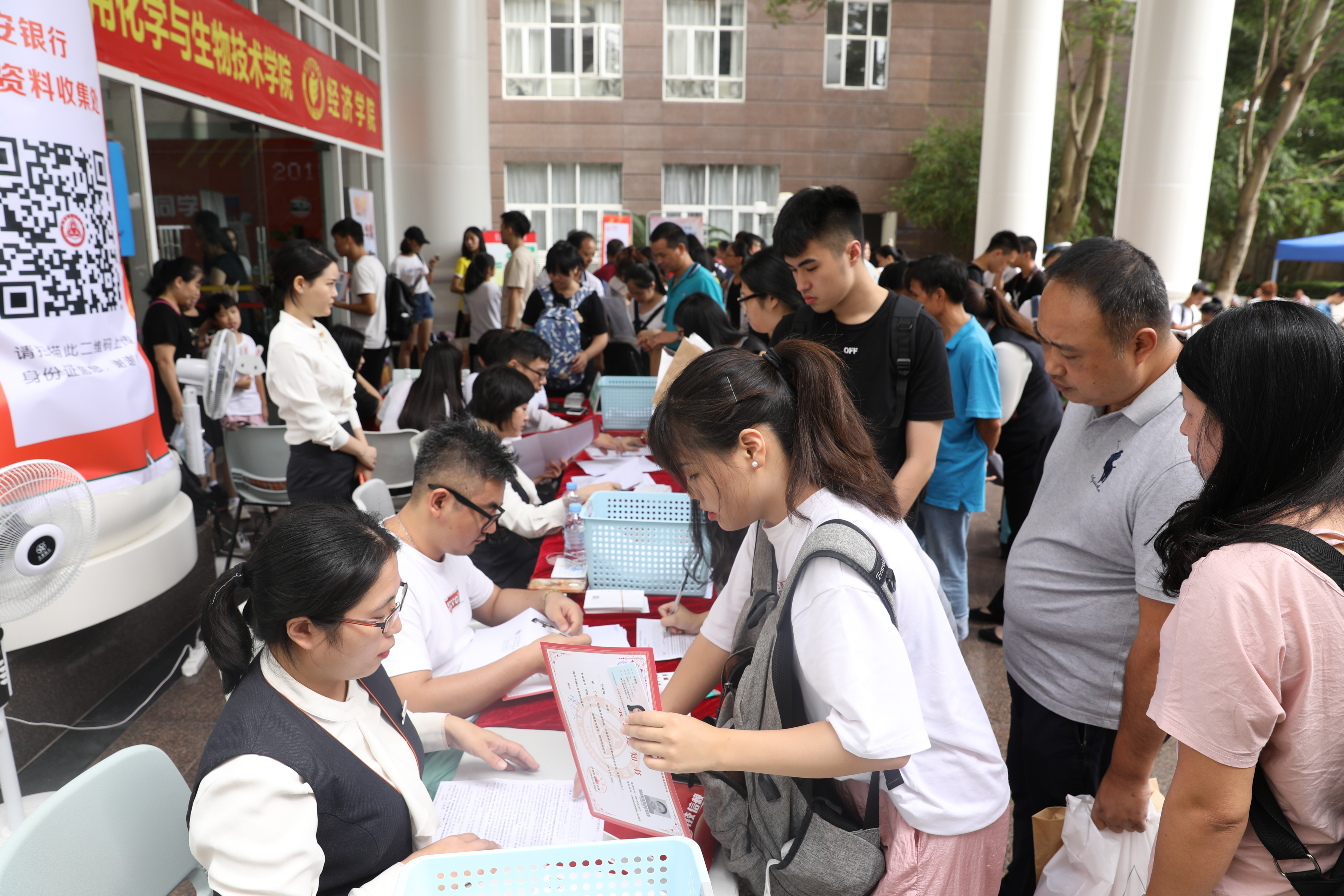 近日,深圳職業(yè)技術(shù)信息學(xué)院8000余名新生入學(xué)報(bào)到,平安銀行深圳分行派出100多名工作人員,僅用數(shù)小時(shí)就為所有新生現(xiàn)場(chǎng)辦理了該行新型“校園一卡通”。