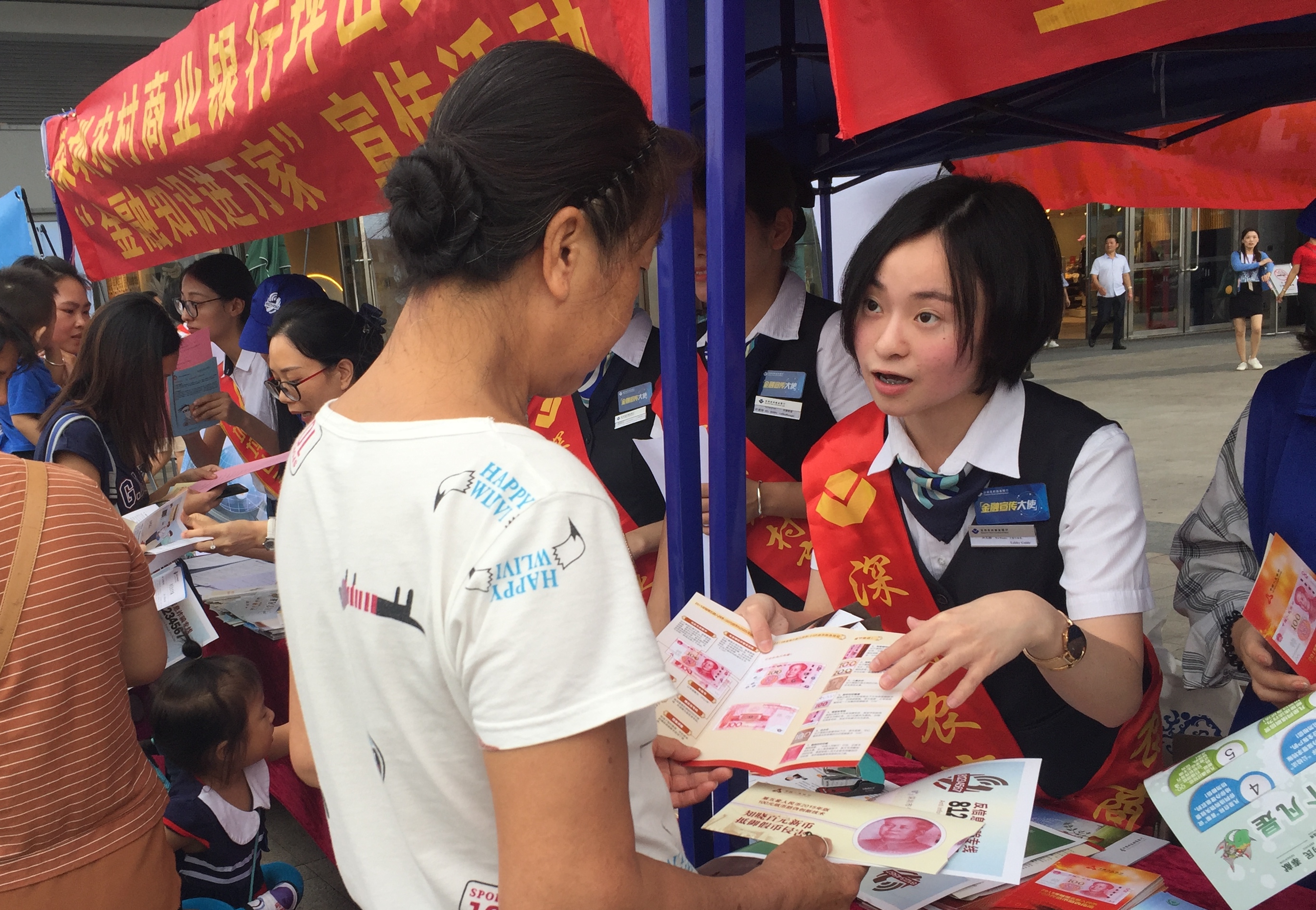 為進(jìn)一步推動(dòng)金融知識(shí)的廣泛傳播,9月28日,深圳農(nóng)村商業(yè)銀行攜同光大銀行、郵政儲(chǔ)蓄銀行、坪山珠江村鎮(zhèn)銀行在坪山區(qū)大型商場“益田假日世界廣場”舉行“金融知識(shí)宣傳活動(dòng)”。活動(dòng)現(xiàn)場來咨詢的市民絡(luò)繹不絕,很多聽完講解的市民都對這種貼心的宣傳服務(wù)譽(yù)不絕口。