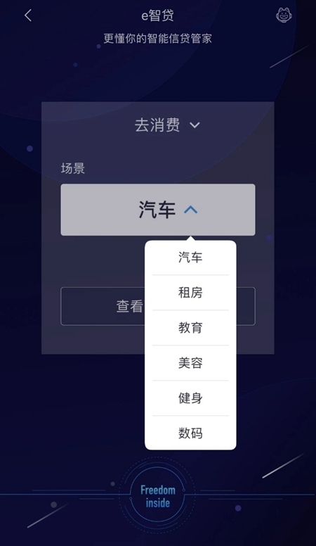 在客戶點(diǎn)擊e智貸后,F(xiàn)reedom還會(huì)根據(jù)客戶需求通過(guò)點(diǎn)擊「去消費(fèi)」就能推薦汽車、租房、教育、美容、健身、數(shù)碼等服務(wù),助力客戶開(kāi)啟品質(zhì)生活。