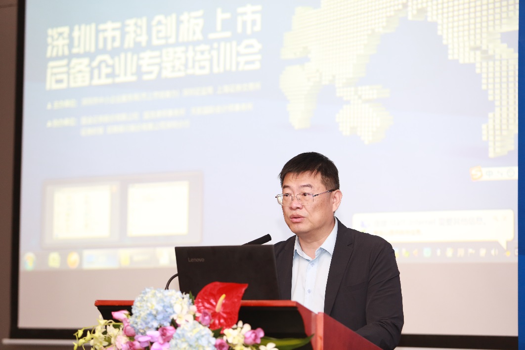 本次培訓(xùn)會(huì)由賈長(zhǎng)勝局長(zhǎng)致開幕詞,賈局長(zhǎng)提到, 深圳市中小企業(yè)局一直致力于扶持本地 中小 企業(yè)做大做強(qiáng), 本次培訓(xùn)會(huì)旨在幫助 后備 企業(yè)深入了解科創(chuàng) 板制度安排和 政策導(dǎo)向、企業(yè)上市策略及上市流程等方面的內(nèi)容, 助力深圳本地企業(yè)把握歷史機(jī)遇 登陸科創(chuàng)板 ,借力資本市場(chǎng)開創(chuàng)新里程續(xù)寫新篇章 。
