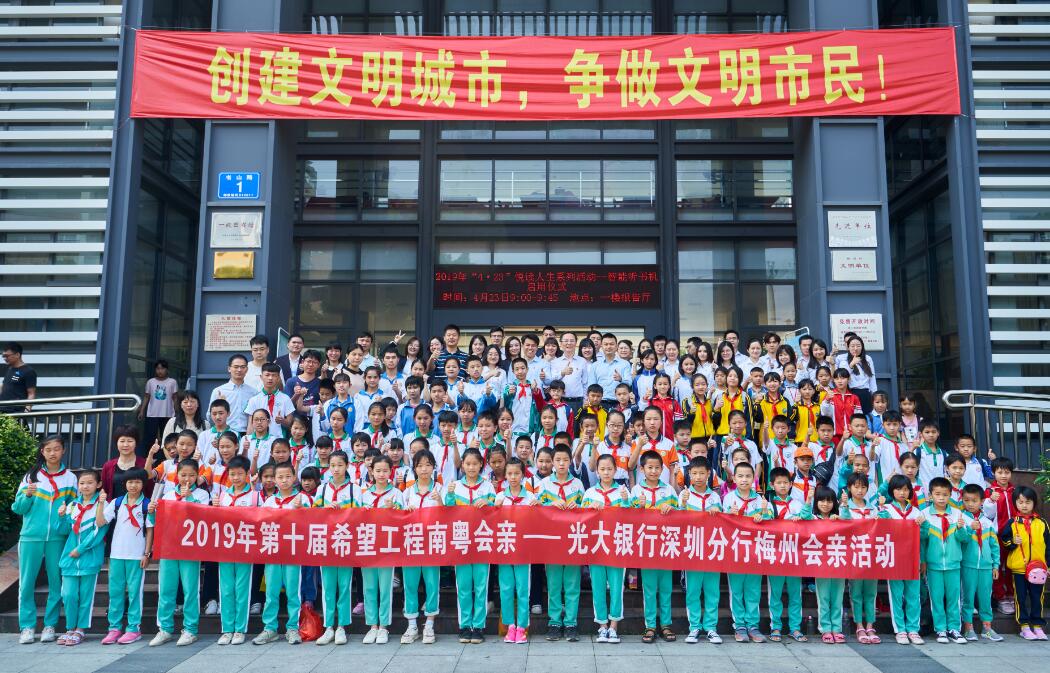 2019年第十屆希望工程南粵會親-光大銀行深圳分行梅州會親系列活動由共青團(tuán)廣東省委員會等青年組織主辦,共青團(tuán)梅州市委員會等單位承辦,光大銀行深圳分行作為協(xié)辦單位,走進(jìn)廣東省梅州市開展了點(diǎn)對點(diǎn)扶貧工作。