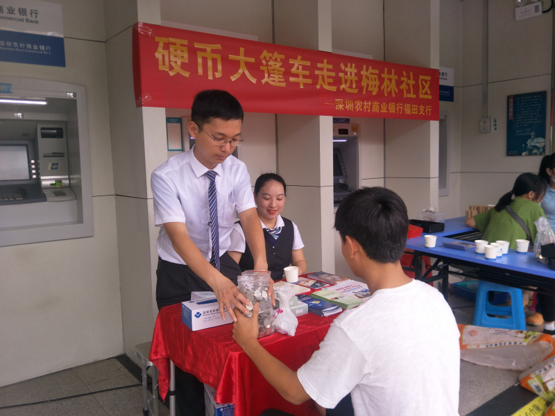 深圳新聞網訊 為深入貫徹黨的十九大精神,積極落實普惠金融政策,優(yōu)化現(xiàn)金流通環(huán)境,提升現(xiàn)金服務水平,深圳農村商業(yè)銀行梅林支行積極落實現(xiàn)金服務示范區(qū)工作,并于8月3日攜手威豹押運公司走進梅林社區(qū),舉辦了硬幣兌換大篷車活動。