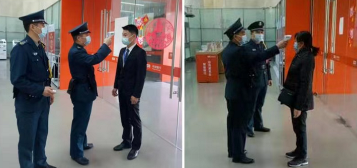 網(wǎng)點(diǎn)服務(wù)人員對(duì)進(jìn)入營業(yè)網(wǎng)點(diǎn)的人員做好體溫測量,對(duì)于上門辦理業(yè)務(wù)的客戶,引導(dǎo)客戶佩戴口罩,鼓勵(lì)客戶使用自助機(jī)具或線上金融服務(wù),每日定時(shí)對(duì)填單臺(tái)、簽字筆等客戶頻繁接觸部位進(jìn)行消毒,保障客戶身體健康。