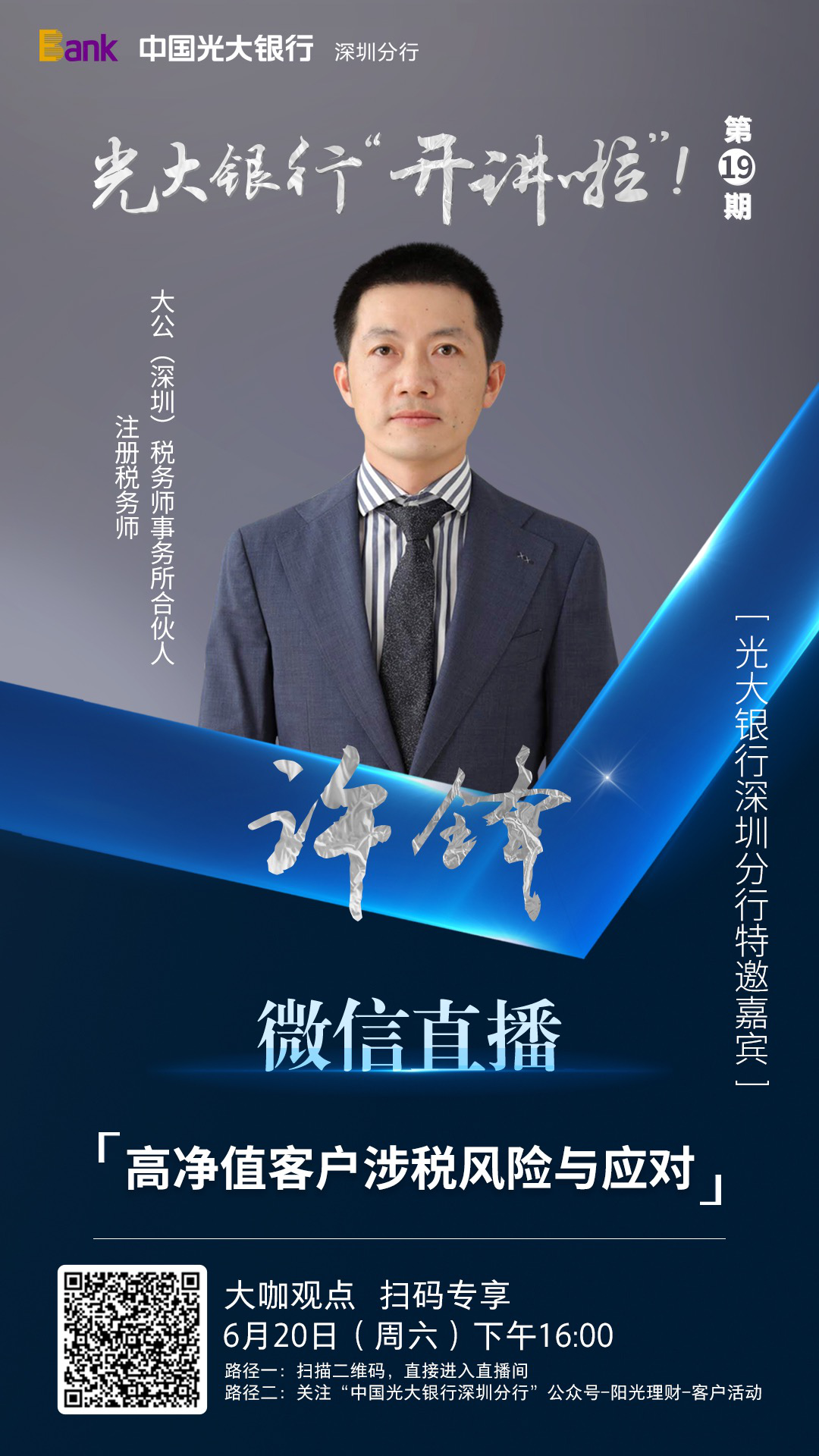 光大銀行深圳分行攜手大粵教育 開講 《高凈值客戶涉稅風(fēng)險(xiǎn)與應(yīng)對(duì)》