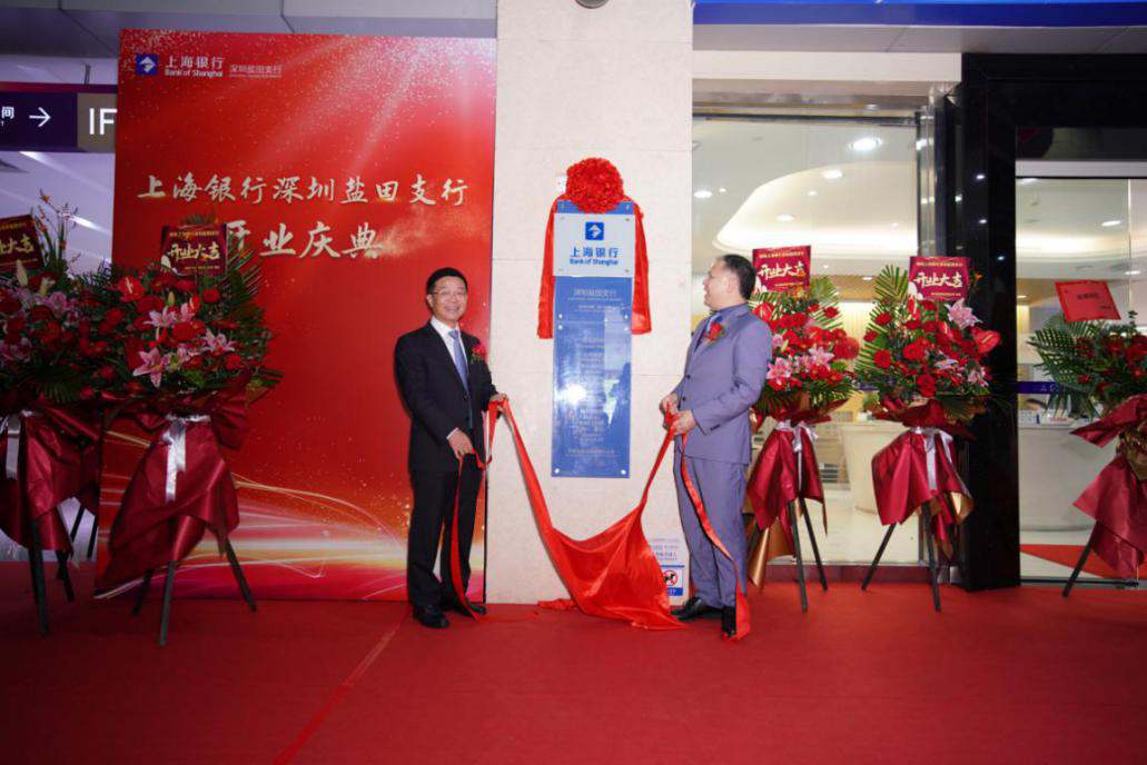 上海銀行深圳分行副行長陳璇強與鹽田支行行長劉源共同揭幕