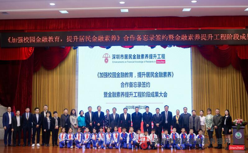 深圳新聞網(wǎng)·見圳客戶端2020年12月29日訊 近日,由中國人民銀行深圳市中心支行、深圳銀保監(jiān)局、深圳證監(jiān)局、深圳市地方金融監(jiān)督管理局、深圳證券交易所、深圳市教育局、福田區(qū)人民政府主辦,深圳市民政局協(xié)辦的《加強(qiáng)校園金融教育,提升居民金融素養(yǎng)》合作備忘錄簽約暨金融素養(yǎng)提升工程階段成果大會在福田實驗僑香學(xué)校舉行。深圳市政府、相關(guān)機(jī)構(gòu)領(lǐng)導(dǎo),市各金融機(jī)構(gòu)代表、市區(qū)中小學(xué)校領(lǐng)導(dǎo)、街道社區(qū)負(fù)責(zé)人以及僑香學(xué)校的師生們等逾200人出席了大會。