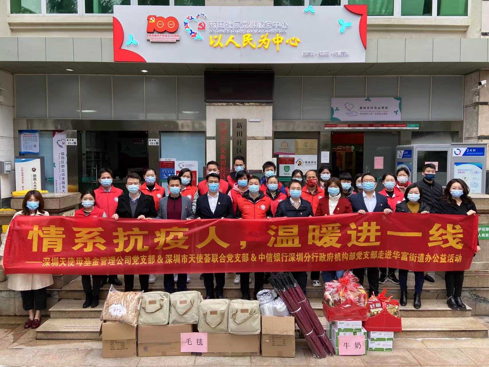 據(jù)了解,近日中信銀行深圳分行政府機(jī)構(gòu)部黨支部與深圳市天使母基金管理公司黨支部、深圳天使薈聯(lián)合黨支部到福田華富街道新田社區(qū)開展了“情系抗疫人,溫暖進(jìn)一線”活動;信息技術(shù)部黨支部赴羅湖南湖街道海燕廣場核酸檢測點(diǎn)、后海支行黨支部赴南山海信廣場核酸檢測點(diǎn)、寶城支行前往寶安海雅繽紛城廣場核酸檢測點(diǎn)進(jìn)行慰問,用實(shí)際行動支援抗疫工作。慰問了一線抗疫工作人員,同時為社區(qū)提供了充電寶、毛毯、雨傘、食品、飲品等防疫物資。寒冷中,熱騰騰的姜茶不僅讓抗疫工作者舒緩了疲憊,更讓他們頓感心中溫暖。