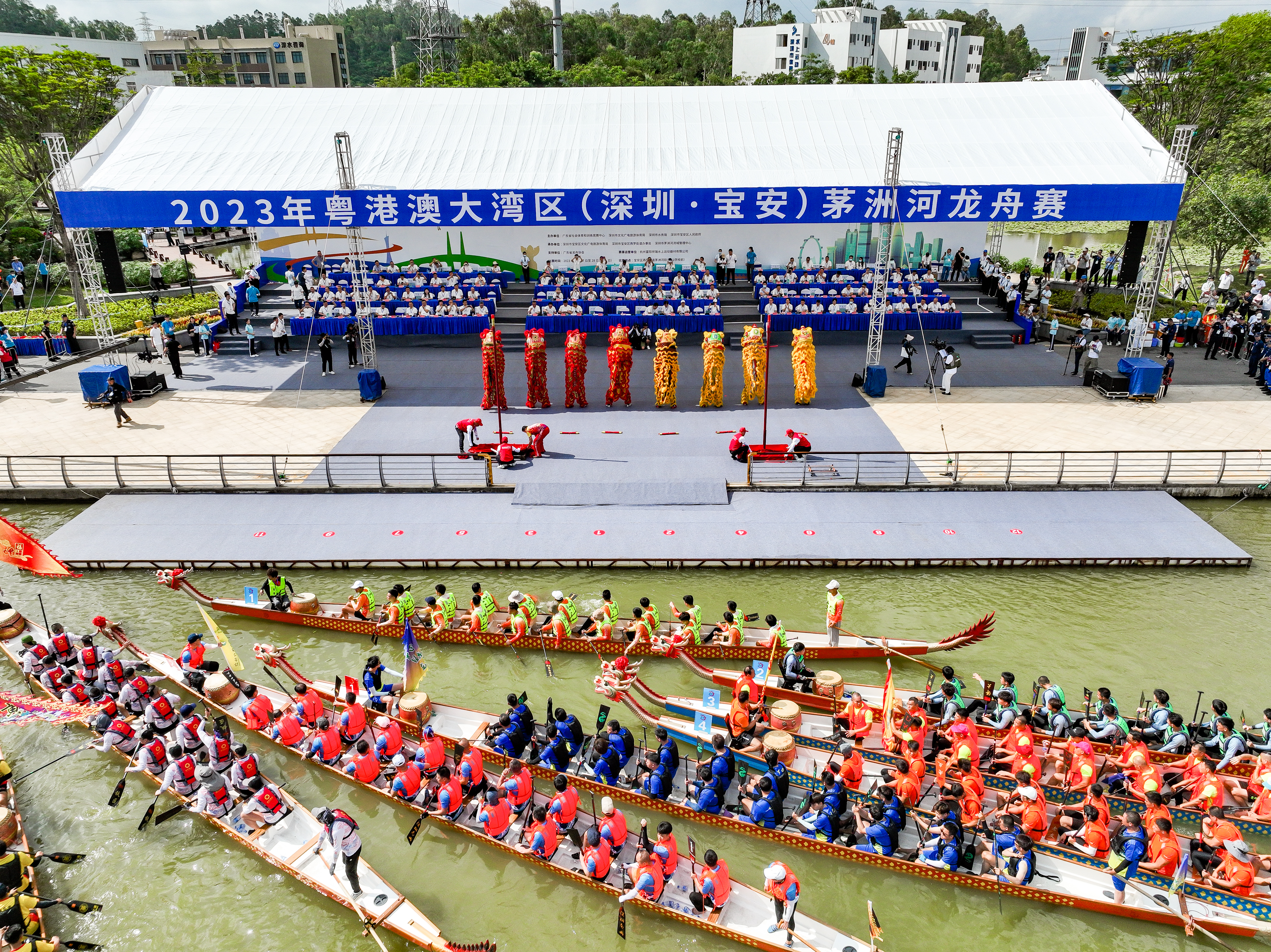 讀特客戶端·深圳新聞網2023年5月29日訊(記者 朱琳 通訊員 張保英 張士杰)5月28日,2023年粵港澳大灣區(qū)茅洲河龍舟賽在深圳市寶安區(qū)燕羅街道茅洲河段舉行開幕儀式和決賽。伴隨著鼓手的鼓聲和觀眾的喝彩聲,來自粵港澳大灣區(qū)的24支隊伍在茅洲河逐浪競速,一艘艘龍舟就像離弦的箭一般,筆直地朝著終點沖去。