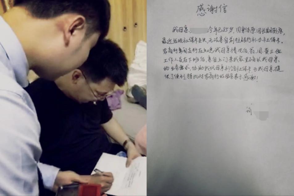深圳農(nóng)商銀行觀瀾支行“窗口”移至“家門口”。2024年5月,觀瀾支行接到客戶翁先生反饋其85歲母親的社??ú簧鬟z失,急需補回卡取養(yǎng)老金。但阿婆長期臥床,行動不便,無法出門。針對此情況,觀瀾支行工作人員告知客戶,可通過上門核實阿婆的情況及意愿后,由其代母親辦理。后續(xù)在確認客戶時間后,觀瀾支行安排員工上門核實阿婆委托兒子辦理業(yè)務的意愿。在確認其意愿清晰真實后,阿婆的兒子到網(wǎng)點為其代辦了相關業(yè)務。客戶為此手寫感謝信對工作人員的貼心服務表達了感激。