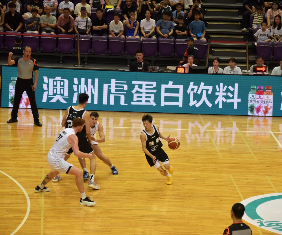 在爭冠大戰(zhàn)中,廣東全運男籃開局先聲奪人,借助火熱的手感,用外線三分建立了領先優(yōu)勢,直至第三節(jié),廣東全運男籃一直保持領先。但第四節(jié)新西蘭男籃逐漸掌控了場上主動,并在節(jié)中實現(xiàn)反超,盡管兩名國手杜潤旺、王浩然不斷追分,但面對新西蘭男籃高強度的防守,最終廣東全運男籃還是以77-82憾負新西蘭男籃,但全隊在深圳球迷面前展現(xiàn)出了頑強的拼搏精神贏得了全場球迷熱烈的掌聲。本場比賽,來自深圳男籃的王浩然拿到了全隊最高的19分,杜潤旺砍下了15分,小將張文逸則貢獻了17分。通過與幾支高水平球隊的較量,剛集結不久的廣東全運男籃逐漸找到狀態(tài),為備戰(zhàn)今年全運會、沖擊男籃項目金牌打下了堅實的基礎。