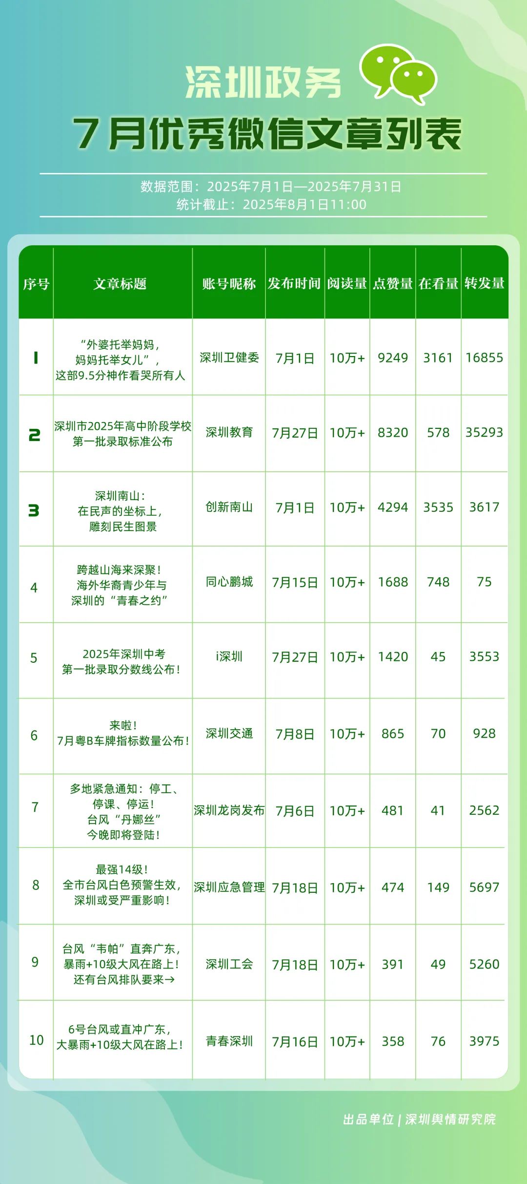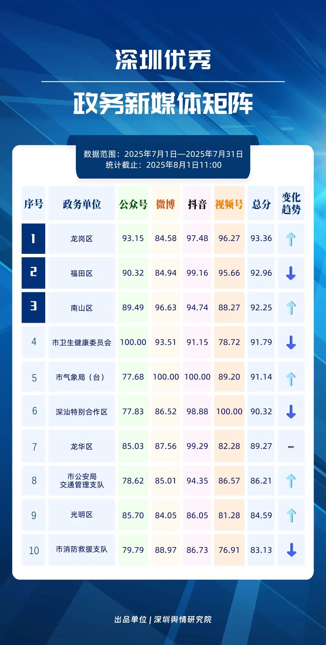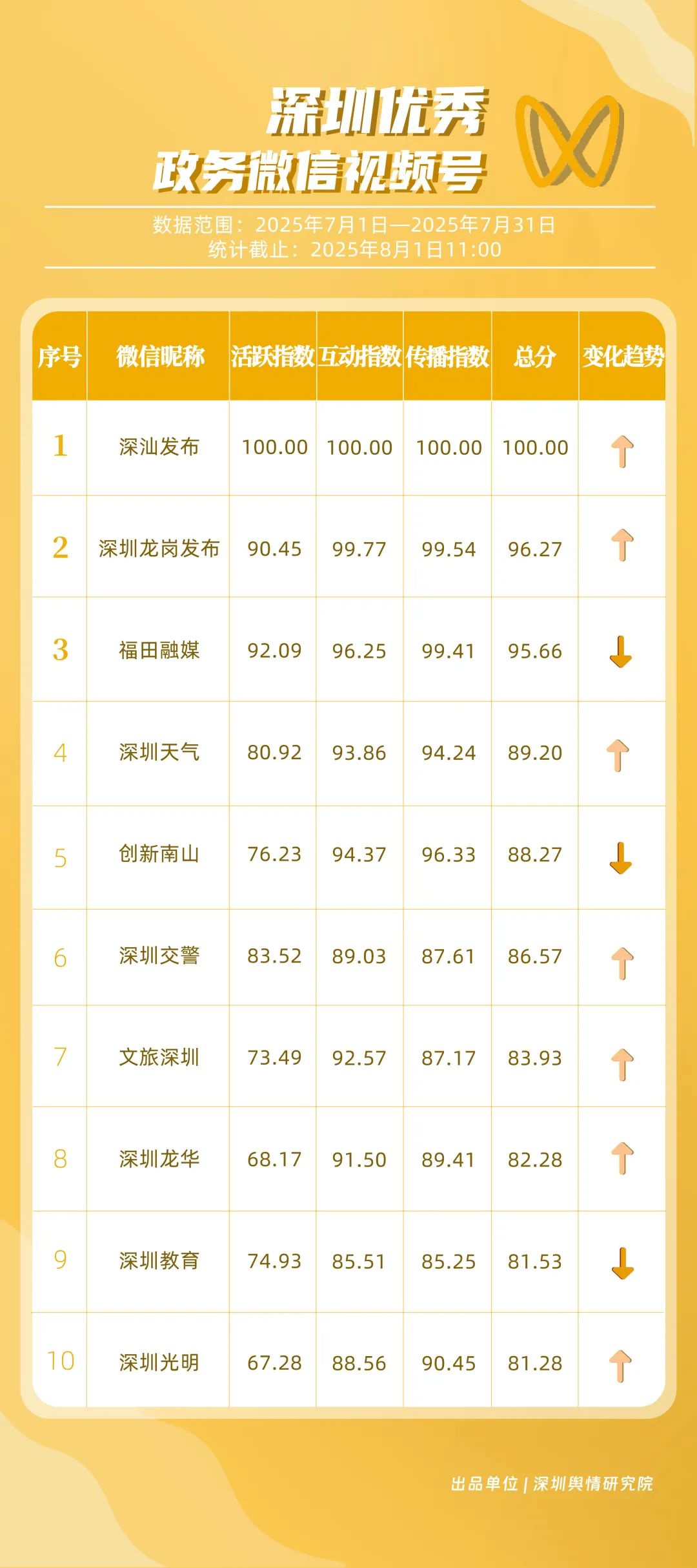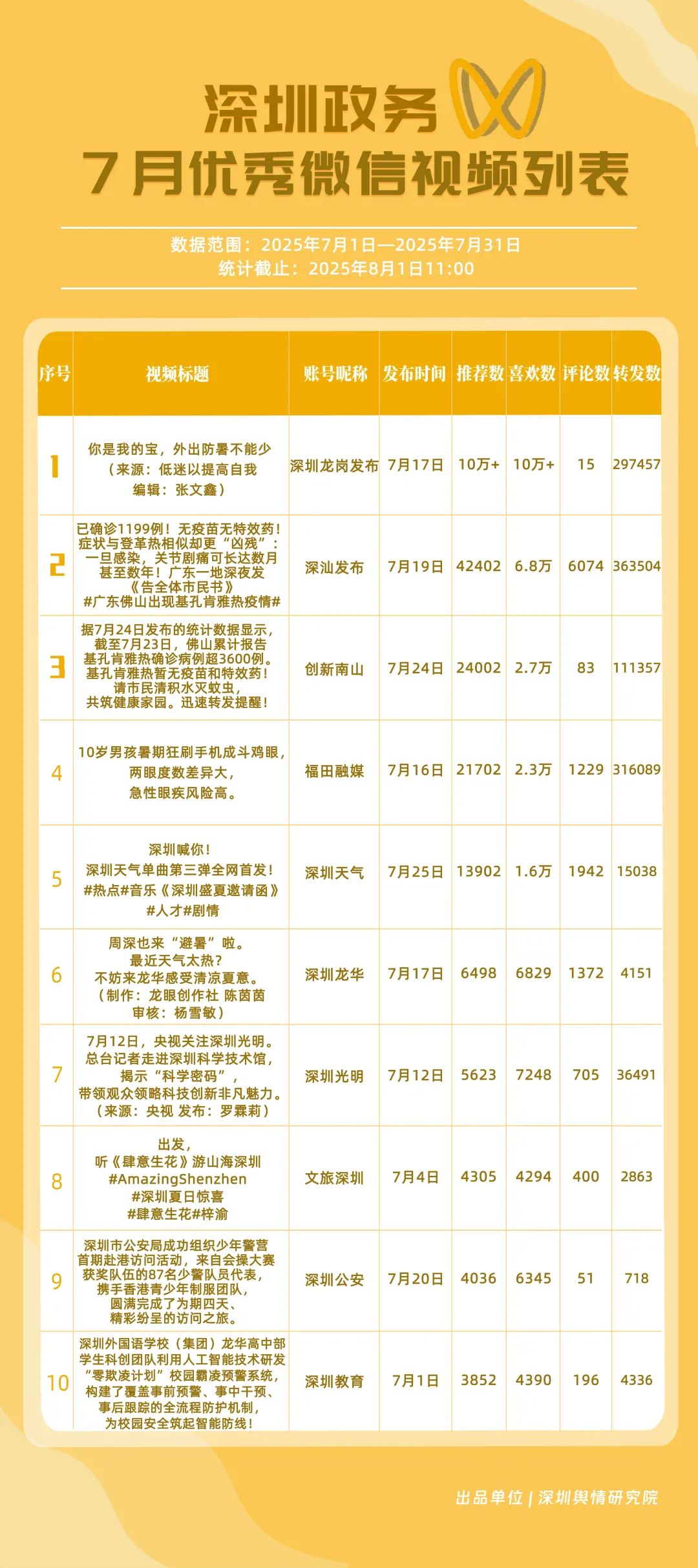 關(guān)注!這三區(qū)新媒體矩陣位列前三名!7月“深圳優(yōu)秀政務(wù)新媒體矩陣”榜單發(fā)布