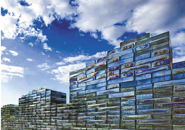 最具代表性的是盛姍姍受邀參加2009年第53屆威尼斯雙年展的作品《開放的長城》,它長約22米,由2200多塊玻璃磚組成,對應(yīng)中國長城存世的2200多年歷史,通身透出七彩光芒;《文字演變》描述了象形文字從原始的狀態(tài)到當(dāng)代文字的演變;《舞動的絲帶》則以中國當(dāng)代的絲帶舞為基礎(chǔ),形成色彩與絲帶交織的造型,而這種造型代表了泛文化在公共建筑內(nèi)的交融。此外,《生生不息的竹子》《華夏青銅時代系列》《算盤》等作品,都可以找到鮮明的中國傳統(tǒng)文化元素。