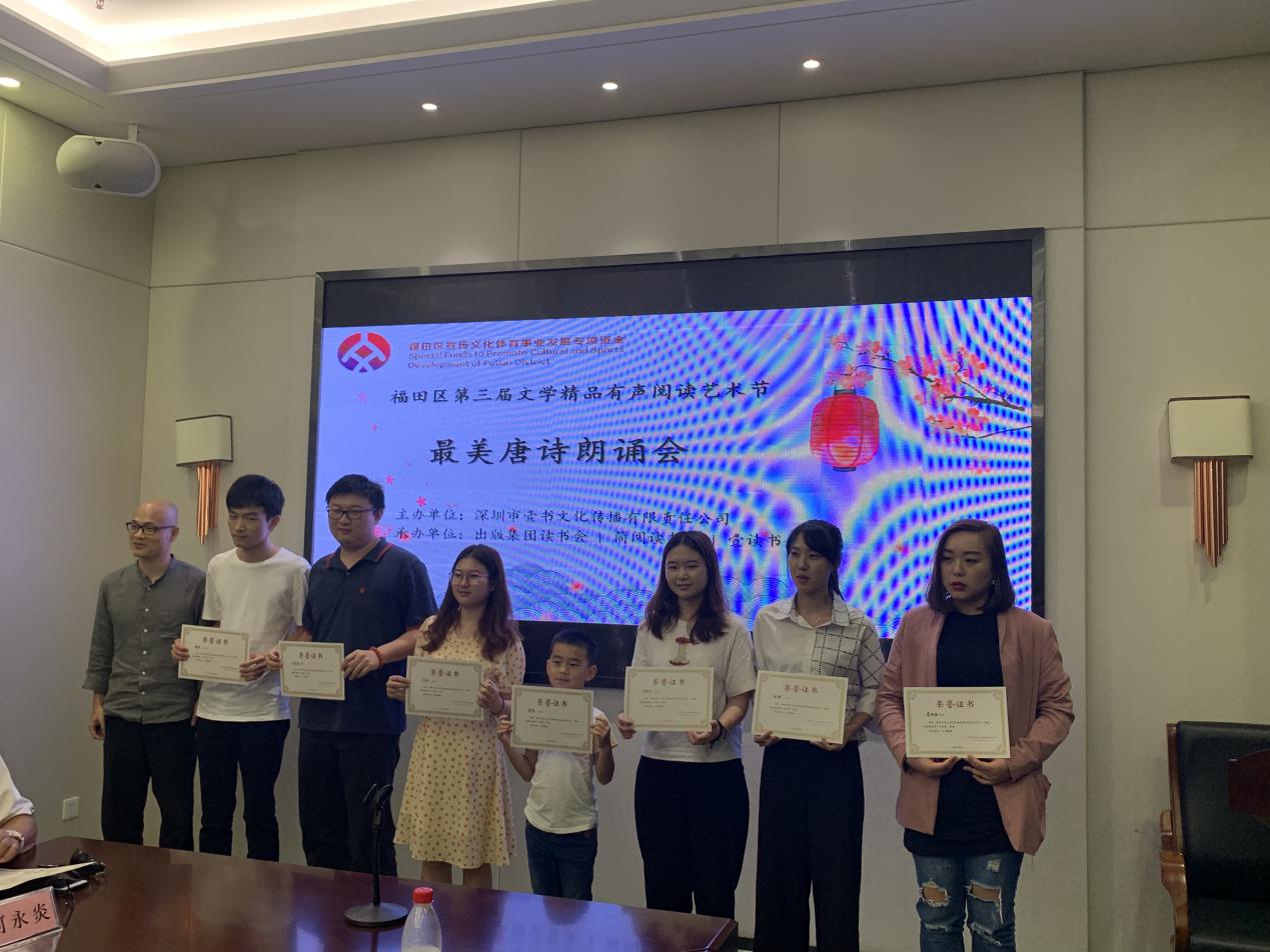 最美唐詩朗誦會由何永炎先生、書城投控副總經(jīng)理兼書吧公司總經(jīng)理方勤女士、壹讀書會創(chuàng)始人劉建彪先生擔(dān)任評委,為精彩的朗誦表演評選出一、二、三等獎。