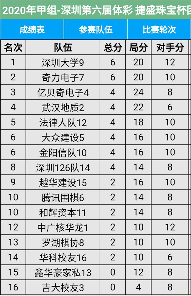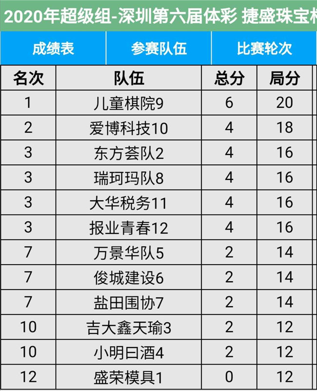 深圳市圍棋聯(lián)賽以其獨特的25D賽制,新穎的團體對抗形式,旗鼓相當(dāng)?shù)膶嵙Ρ绕?,而深受圍棋愛好者的喜愛,已然成為每年一度的市圍棋愛好者的盛會。本屆?lián)賽共有28支隊伍參賽,每支隊伍12人,領(lǐng)隊和教練各一至兩人,今年參賽人數(shù)約四百多人。其中,超級隊12支,進行11輪單循環(huán)比賽,甲級隊16支進行11輪積分循環(huán)賽。具體賽程安排是:今日開賽后,連續(xù)四個周日,每周3場比賽,計劃在11月22日完成比賽。本屆比賽12支超級隊是:盛榮模具、東方薈隊、吉大隊、小明日酒、萬景華隊、俊城建設(shè)、鹽田棋協(xié)、瑞珂瑪隊、兒童棋院、愛博科技、大華稅務(wù)、報業(yè)青春。16支甲級隊是:中廣核華龍、武漢地質(zhì)、吉大校友、億貝奇電子、大眾建設(shè)、騰訊圍棋、奇力電子、羅湖圍棋、深圳大學(xué)、金陽信隊、和輝資本、法律人隊、鑫華豪家私、深圳126隊、越華建設(shè)、華科校友。大家濟濟一堂,通過手談增進友誼,提高棋藝。本屆比賽超級組與甲級組實行升降制,將通過四個周日的比賽,分別決出前六名和三支升降的隊伍。