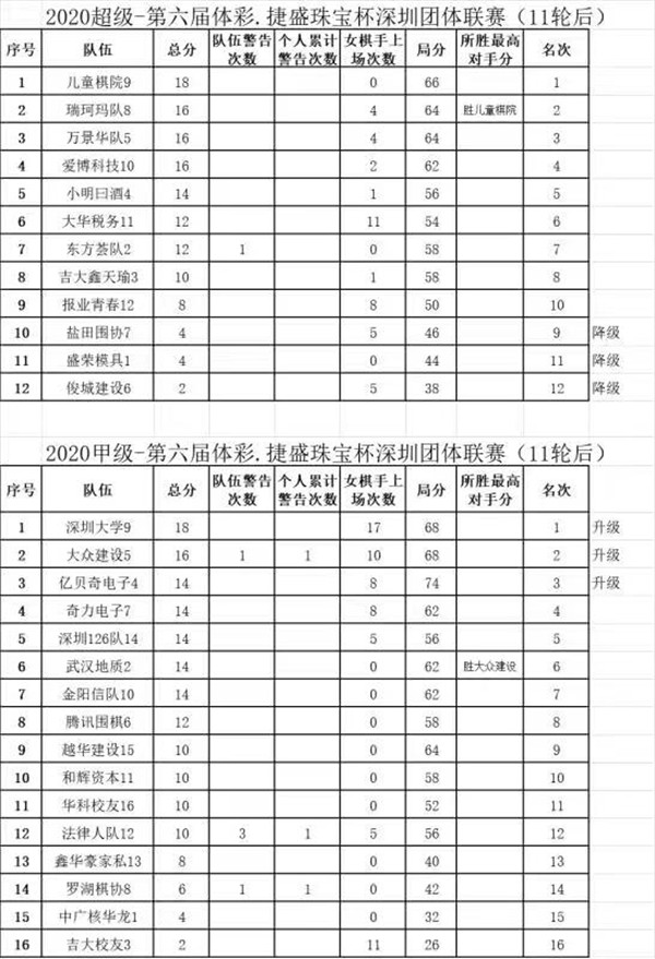 附錄:深圳市第六屆圍棋聯(lián)賽超級組、甲級組最終比賽結(jié)果