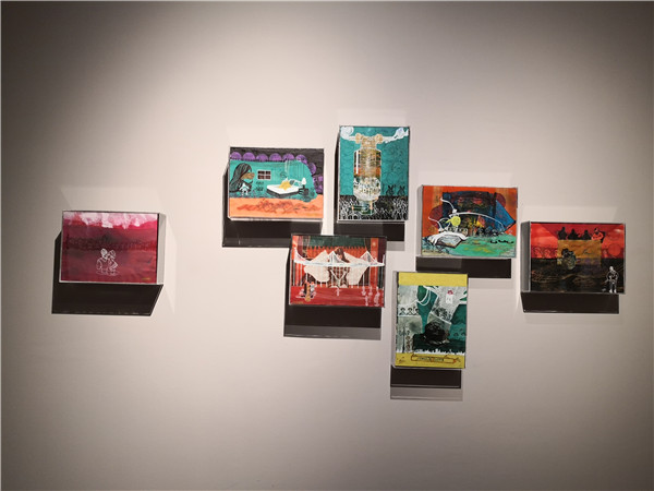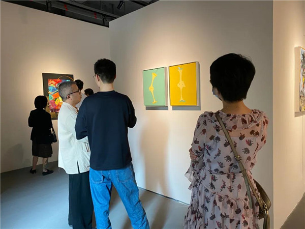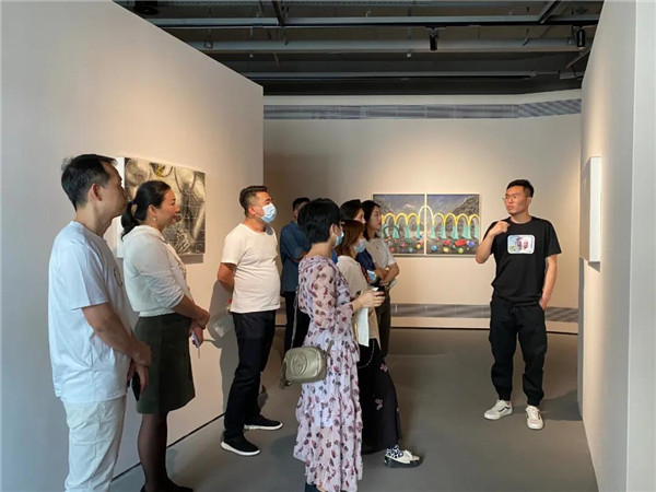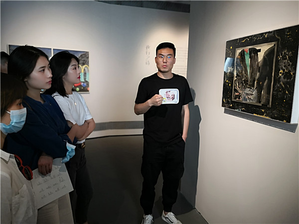 聯(lián)展現(xiàn)場三位作者向參觀者介紹創(chuàng)作經(jīng)歷及畫作意蘊。