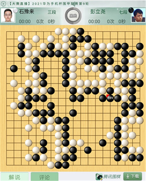 一臺石豫來執(zhí)白對陣彭立堯。開局白棋不錯,進(jìn)入中盤白棋大局不足,被黑在中央雙方消長處連續(xù)行棋,局面被動。官子時白棋也失誤多多,最終黑棋大勝。