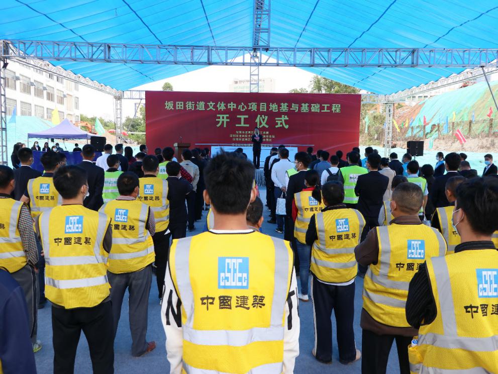 施工單位代表趙小東提出,坂田街道文體中心項目的落地,是龍崗?fù)七M城市建設(shè)再添新地標(biāo)、助力鵬城提升城市品質(zhì)的有力舉措。對于文體中心項目的建設(shè)工作,他代表中建八局作出莊嚴承諾,將以“三不”精神推進項目建設(shè):一是不負眾望,堅定履約信心,全身心投入工程建設(shè)當(dāng)中;二是不遺余力,狠抓工作落實,保證科學(xué)統(tǒng)籌,高效施工;三是不辱使命,奉獻優(yōu)質(zhì)工程,在安全、質(zhì)量、科技等方面優(yōu)先資源投入,打造安全工程、精品工程、智慧工程。