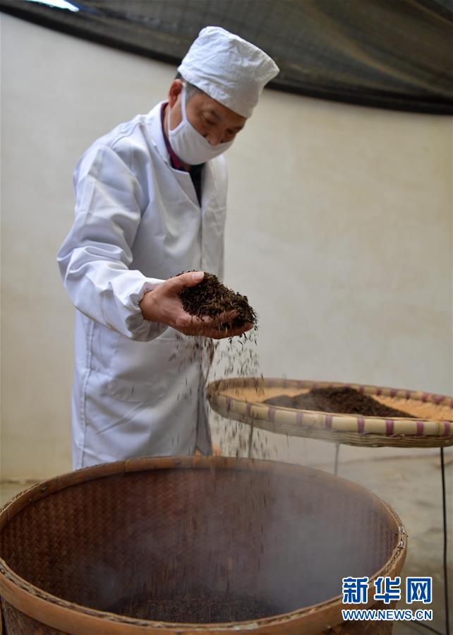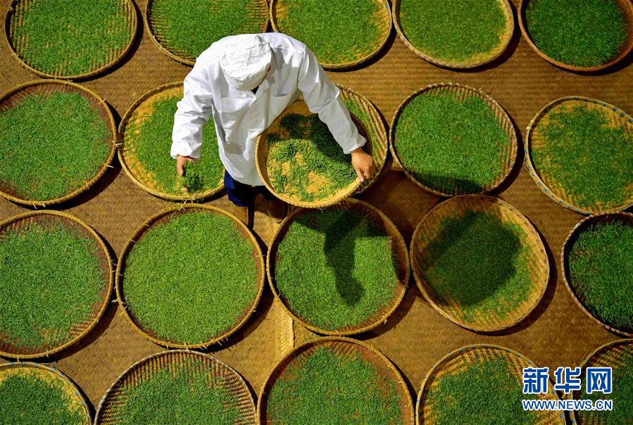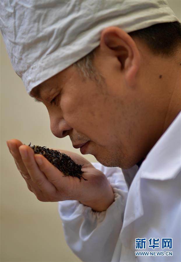 產(chǎn)于湖北省恩施土家族苗族自治州利川市毛壩鎮(zhèn)楠木村的“冷后渾”鮮葉,是制作利川紅茶最為優(yōu)質(zhì)的原料。工人先采下“冷后渾”茶樹(shù)鮮葉,后經(jīng)萎凋、揉捻、發(fā)酵、烘烤、篩選、整形、品級(jí)等工藝,歷時(shí)十多個(gè)小時(shí),最終制成的紅茶沖泡后湯色紅艷明亮、滋味醇厚甘爽。在茶湯冷卻后,湯色逐漸變渾,加熱后又恢復(fù)紅艷明亮,這也是“冷后渾”得名的由來(lái)。新華社發(fā)楊順丕攝