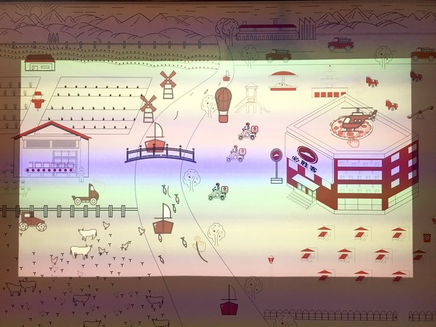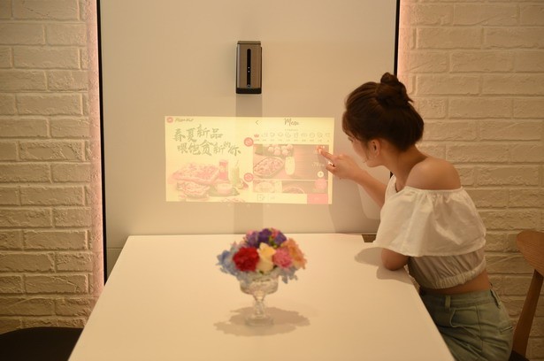 除了“情緒地帶”,智慧餐廳還提供了多元化的互動服務(wù)。門店等位區(qū)有一整面具有奇幻動感效果的投影互動墻,通過獨(dú)特的觸摸啟動可以探索必勝客的比薩從原料種植、加工、生產(chǎn),一直到制作成品、奉客、外送等一系列過程,為顧客提供趣味十足的多感官虛擬互動體驗(yàn),讓無聊的等位時(shí)間也變得興味盎然。
