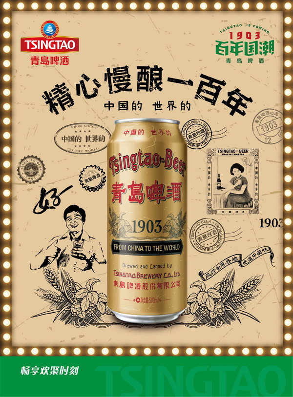 經(jīng)典1903國(guó)潮罐是青島啤酒為再造精釀傳奇,傳承青啤文化和品牌魅力的產(chǎn)品。采用源自1903年的“兩段法低溫釀造工藝”,精心慢釀,造就了醇香四溢的口感和體驗(yàn)。罐體上復(fù)刻了百年前經(jīng)典瓶貼畫面,是啤酒中的國(guó)潮和時(shí)尚的典范。