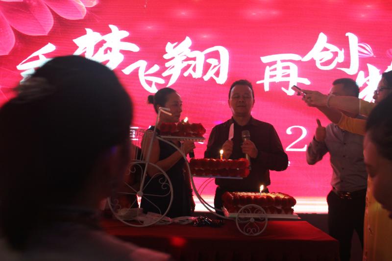 晚宴環(huán)節(jié),精彩節(jié)目不斷,T臺秀、舞蹈表演、歌曲演唱、小品表演、自由唱跳環(huán)節(jié)等,由此,慶典進(jìn)入晚宴和抽獎(jiǎng)環(huán)節(jié)。開場酒過后,全體同仁一邊就餐一邊欣賞表演節(jié)目,熱鬧喜慶。當(dāng)工作人員推出應(yīng)典蛋糕時(shí),譚總、周總一同上臺切蛋糕與全體嘉賓一起分享,慶典瞬間進(jìn)入了高潮,大家見證了藏蟲草健康平臺兩周年的輝煌,是對平臺的肯定,也有對未來的美好期昐!