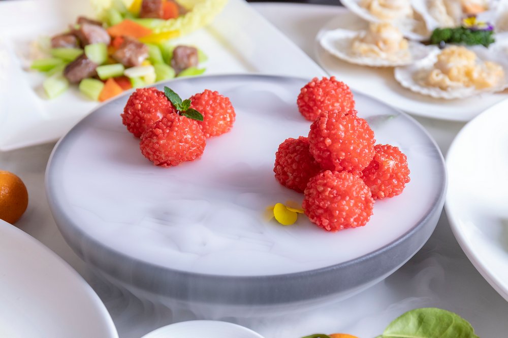 除了兩款福袋,另外還有5款年夜飯可以選擇,“迎春接福宴”、“闔家團(tuán)圓宴”、“萬(wàn)事如意宴”、“花開(kāi)富貴宴”以及“金玉滿堂宴”。金茂深圳JW萬(wàn)豪酒店中餐廳主廚劉師傅精心設(shè)計(jì)的賀歲菜肴除了擺盤(pán)講究之外,亦道道有講究。如:寓意“風(fēng)生水起”的三文魚(yú)生撈起,以三文魚(yú)生為主要食材,配以六款色彩繽紛的蔬菜絲,享用時(shí)眾賓客齊齊用筷子高高撈起,在開(kāi)席即可討個(gè)“越撈越旺”的好彩頭!還有上菜時(shí)冒出“仙氣”的爆汁紅顏妃子笑,寓意“吉祥如意”、寓意“牛氣沖天”的香芹腰果牛肉粒、“年年有余”的清蒸老虎斑、“五谷豐登”的總廚鮑汁炒飯等多款吉祥菜式。