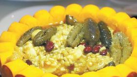 順德聯(lián)塑萬(wàn)怡酒店的主廚馮耀滿推出一款非常健康的創(chuàng)新菜——南瓜五谷雜糧扒蘋果。
