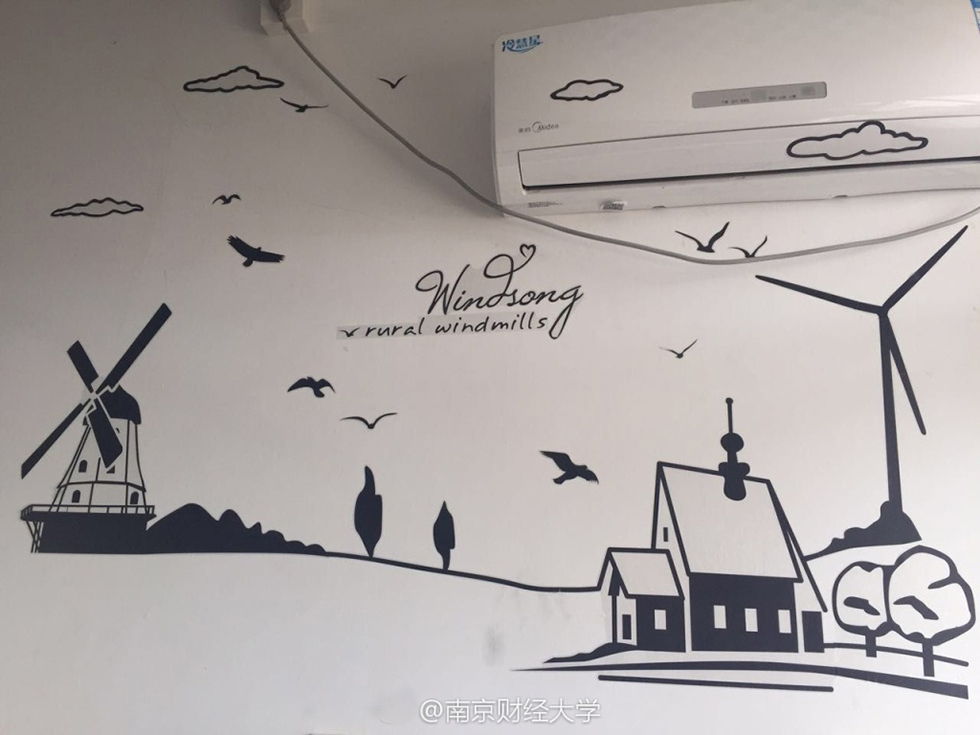 綿綿的草坪、充滿設(shè)計(jì)感的書架、掛著素描畫的墻……難以想象這是四個(gè)19歲男生的寢室。南京財(cái)經(jīng)大學(xué)西苑9幢男生宿舍頂樓602寢室,住著4位“世外高人”—— 涂貴平、柯毅、劉以康和廉鎮(zhèn)宇,他們用事實(shí)告訴大家,男生宿舍文藝起來,可絲毫不輸女生。圖/@南京財(cái)經(jīng)大學(xué)