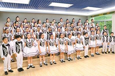 “合唱需要一種力量,叫團結(jié)。它給了我一個快樂美好的展示自我的舞臺?!薄皡⒓雍铣獔F,不但提高了我的音準(zhǔn)和節(jié)奏感,還讓我意識到團隊精神、組織紀(jì)律性以及集體榮譽感?!薄耙驗楹铣?,我學(xué)會了堅持,不管在臺下練多久多累,都為了臺上絢麗的幾分鐘?!痹诤铣獔F音樂教室門口,五彩繽紛的音樂小報上展示著孩子們的合唱風(fēng)采,稚嫩的筆觸表達了孩子們對合唱的熱愛。
