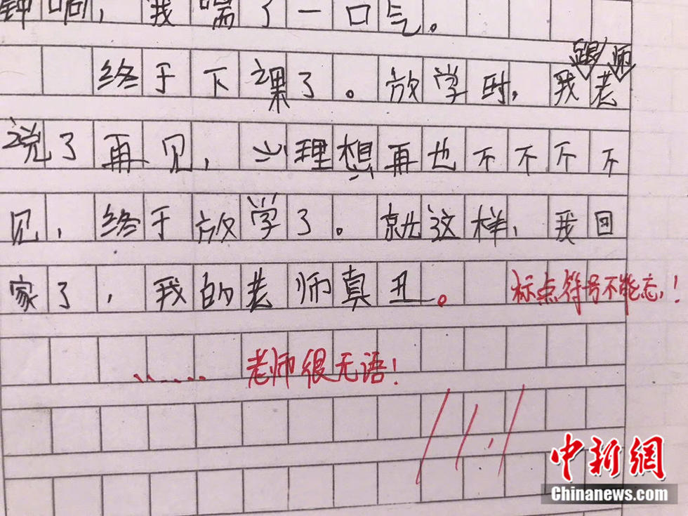 小學(xué)生作業(yè)留言笑哭老師 老師的評(píng)論也亮了